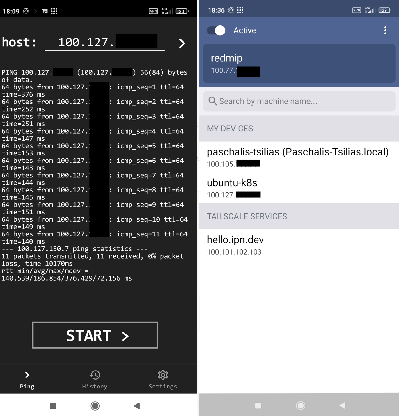 64 bytes from 100.77.xx.yy: icmp_seq=3 ttl=37 time=110 ms